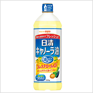 食べた後エネルギーになりやすい、植物成分「中鎖脂肪酸(ちゅうさしぼうさん)」の働きで体に脂肪がつきにくい健康オイル。体脂肪が多めの方や肥満気味の方におすすめの特定保健用食品です。なたね油がベースだから、料理をあっさりと軽い風味に仕上げます。