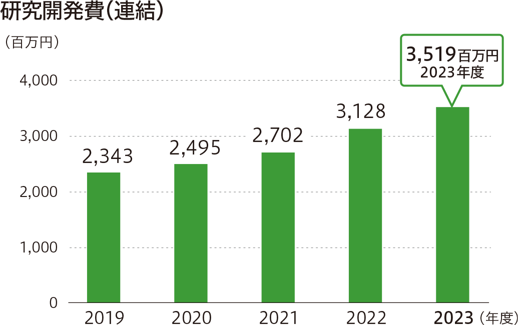 当社がグローバルトップレベルの油脂ソリューション企業となるためには、コアコンピタンスを究め、独創的で高い技術力が不可欠であるとともに、それをスピーディーかつ持続的にお客さまへ提供する力が必要です。そのために、知的資本や人的資本への積極的な投資により、戦略的な知的財産活動や組織力強化等の基盤作りに注力しています。