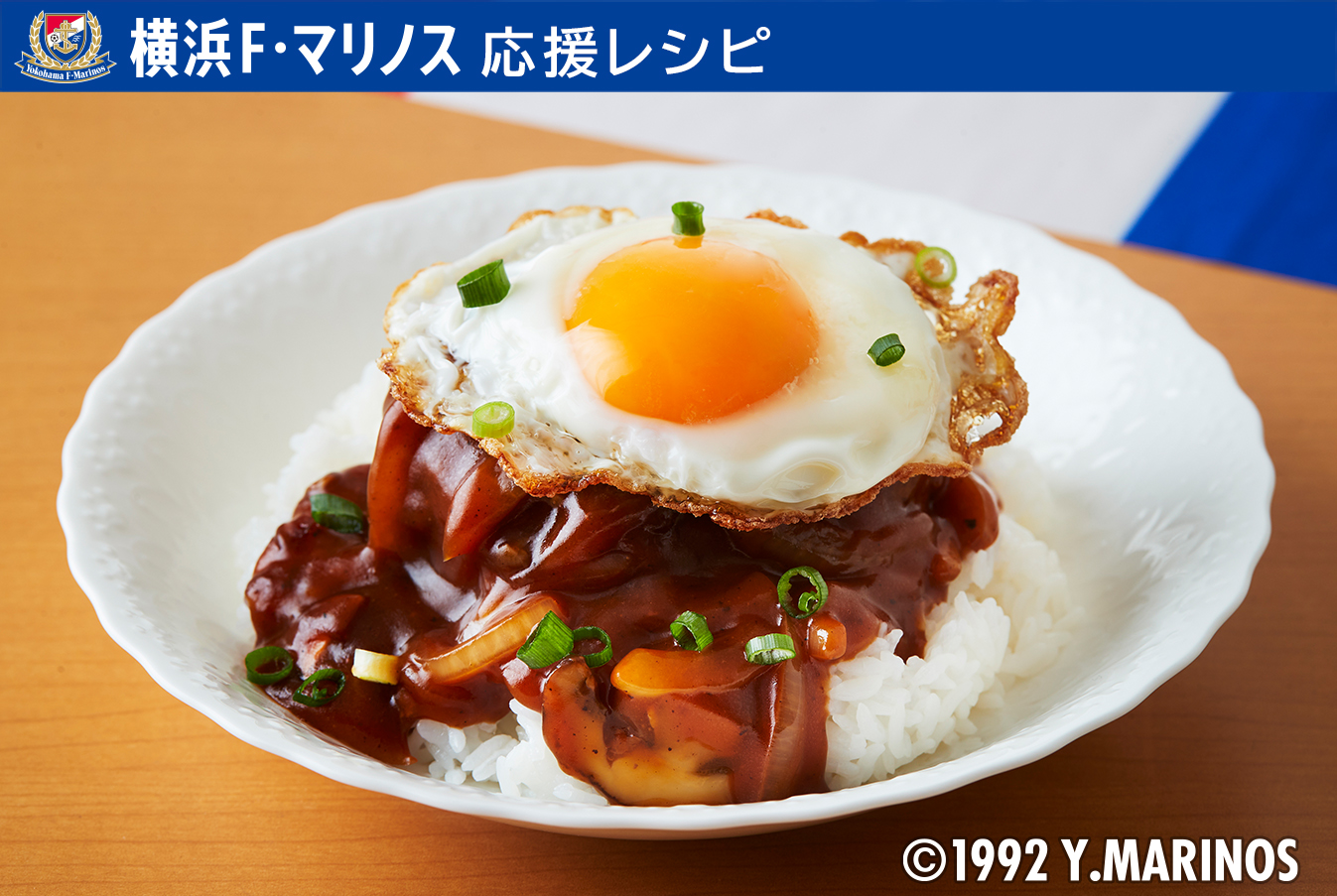 - ❻器にご飯を盛り付け、⑤、目玉焼きをのせ、万能ねぎを散らす。