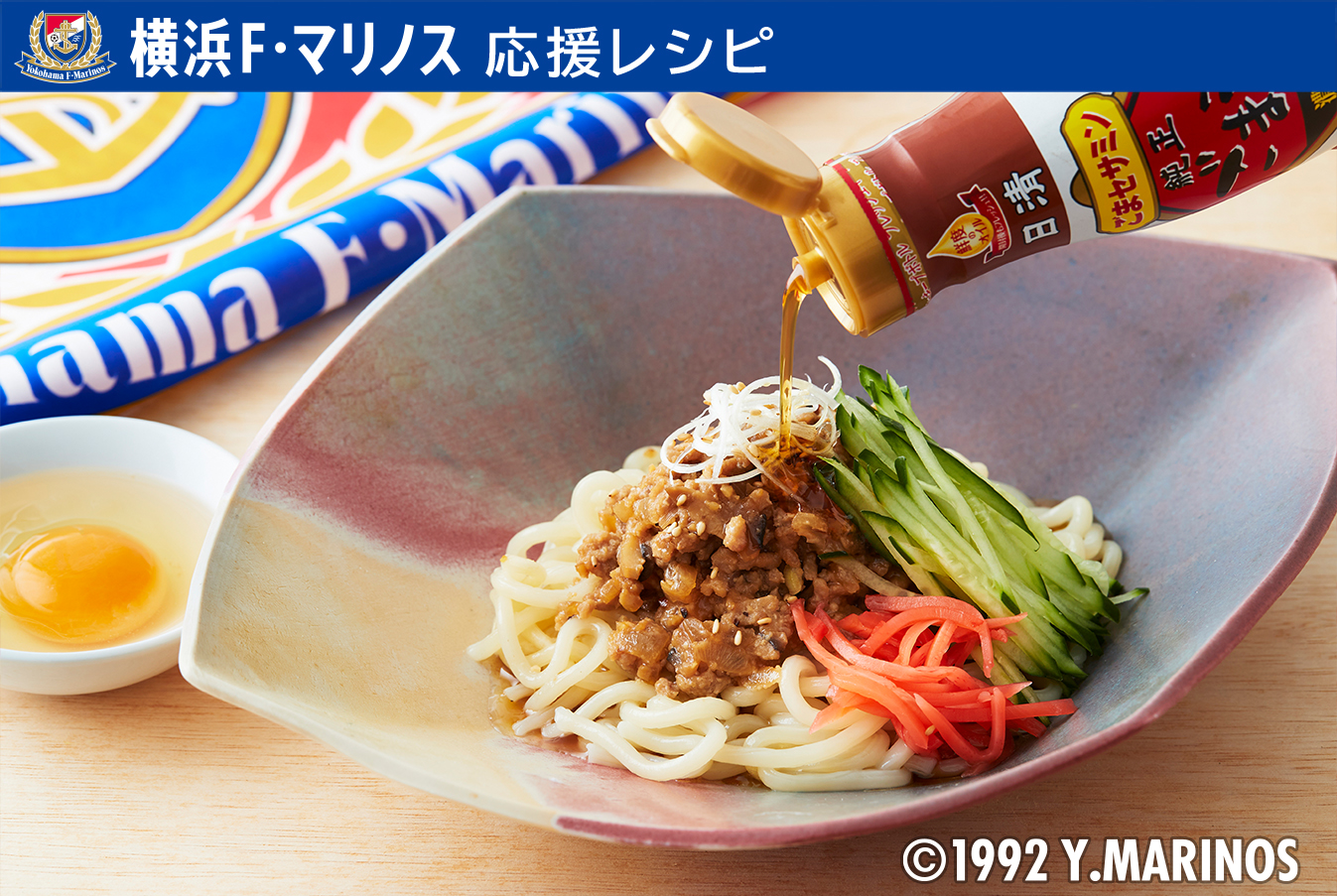 じゃじゃ麺は「麺」と肉みその「豚肉」で糖質とビタミンB1を摂取することができ、エネルギーを効率よく変換できます。さらに、にんにくに含まれるアリシンがビタミンB1の吸収を高め、日頃の練習や、試合での筋疲労の回復をサポートしてくれます。仕上げにかけるごま油の風味が、食欲をそそります。