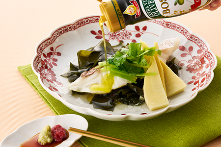 和の食材にもよく合う、BOSCOエキストラバージンオリーブオイル。ふっくら蒸した白身魚にひと回しかければフレッシュな香りとコクが加わり、風味豊かな一品に。わさびや梅との相性も◎