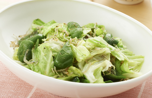 ちりめん入りキャベツとピーマン炒め