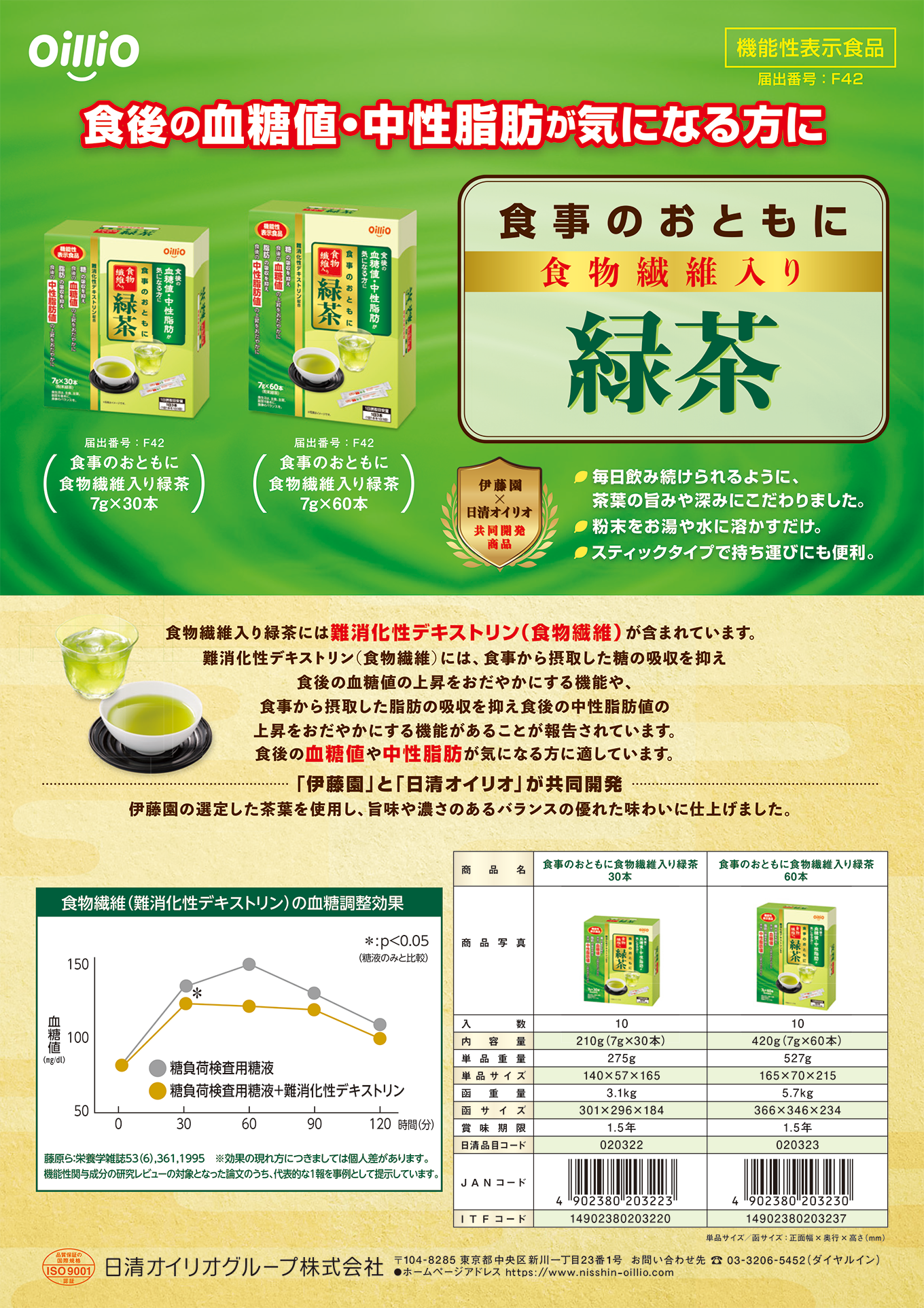 | 食事のおともに食物繊維入り緑茶 3本(21g) | 29.5 | 0.13 | 0.04 | 2.9 | 16.8 | 0.009~ 0.015 |